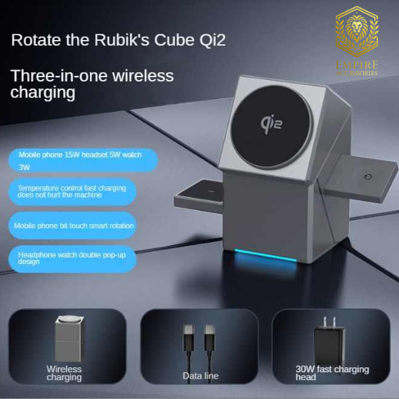 Experience ultimate convenience with the Empire Accessories 3-in-1 Foldable Magnetic Wireless Charger Station, a stylish and compact charging hub that supports fast wireless charging for multiple devices simultaneously, perfect for your phone, earbuds, and smartwatch.