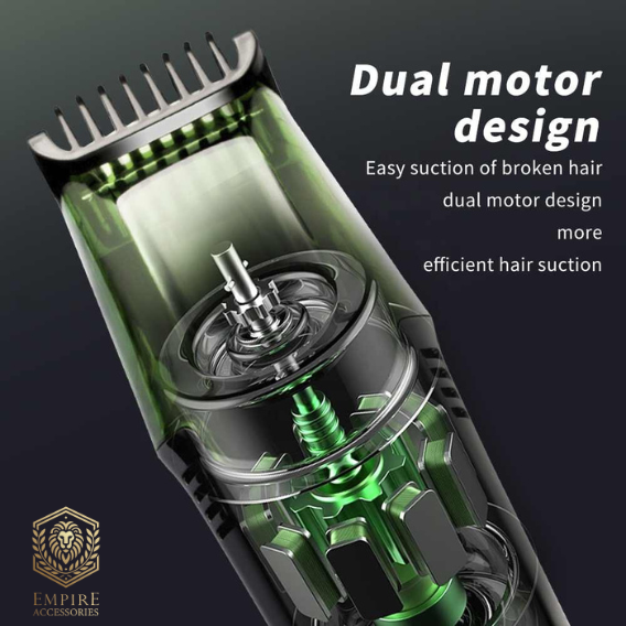 Upgrade your grooming routine with the Empire Accessories High-Power Vacuum Hair Trimmer, featuring integrated suction technology that captures cut hair instantly.