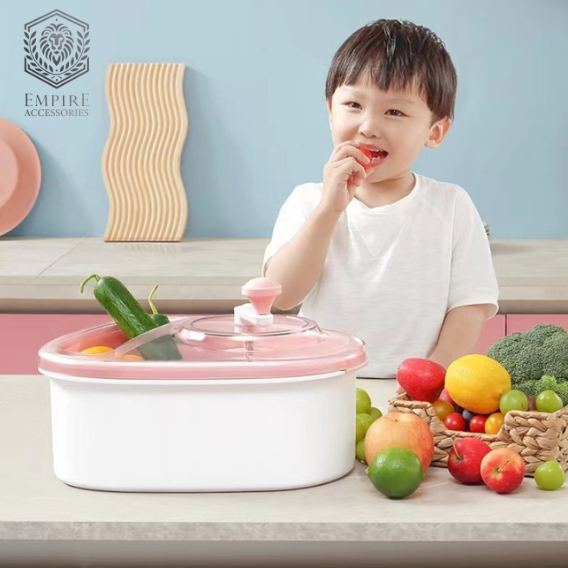 Introducing the Empire Accessories Manual Fruit & Vegetable Cleaning Device, a smart and eco-friendly solution for thoroughly cleaning your produce. This hand-powered ultrasonic washer removes pesticides, dirt, and bacteria to ensure your fruits and veggies are fresh, safe, and ready to enjoy.