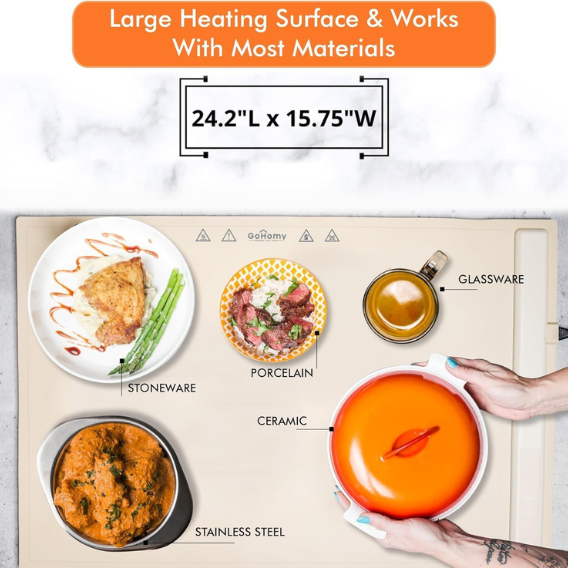 Keep your meals perfectly warm with the Empire Accessories Electric Flexible Silicone Warming Board, featuring cutting-edge graphene heating technology for rapid, even warmth in a flexible, portable design.