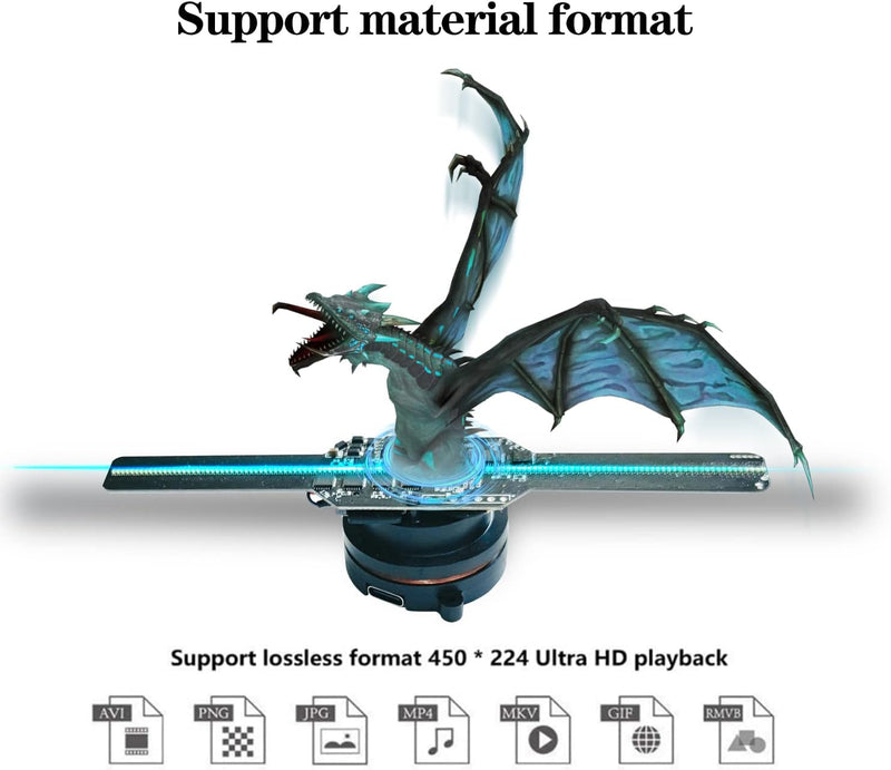 Captivate your audience with the Holographic Fan 42cm Diameters Hologram Fan with 224 Led Lamps 3D Hologram Projector 450x224 Resolution Holographic Led Fan Display Support for Windows XP/7/8/10/Android Advertising Display....