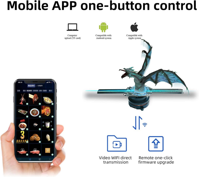 Captivate your audience with the Holographic Fan 42cm Diameters Hologram Fan with 224 Led Lamps 3D Hologram Projector 450x224 Resolution Holographic Led Fan Display Support for Windows XP/7/8/10/Android Advertising Display. This cutting-edge display projects 3D holographic visuals, creating an immersive experience that enhances brand visibility and engagement.